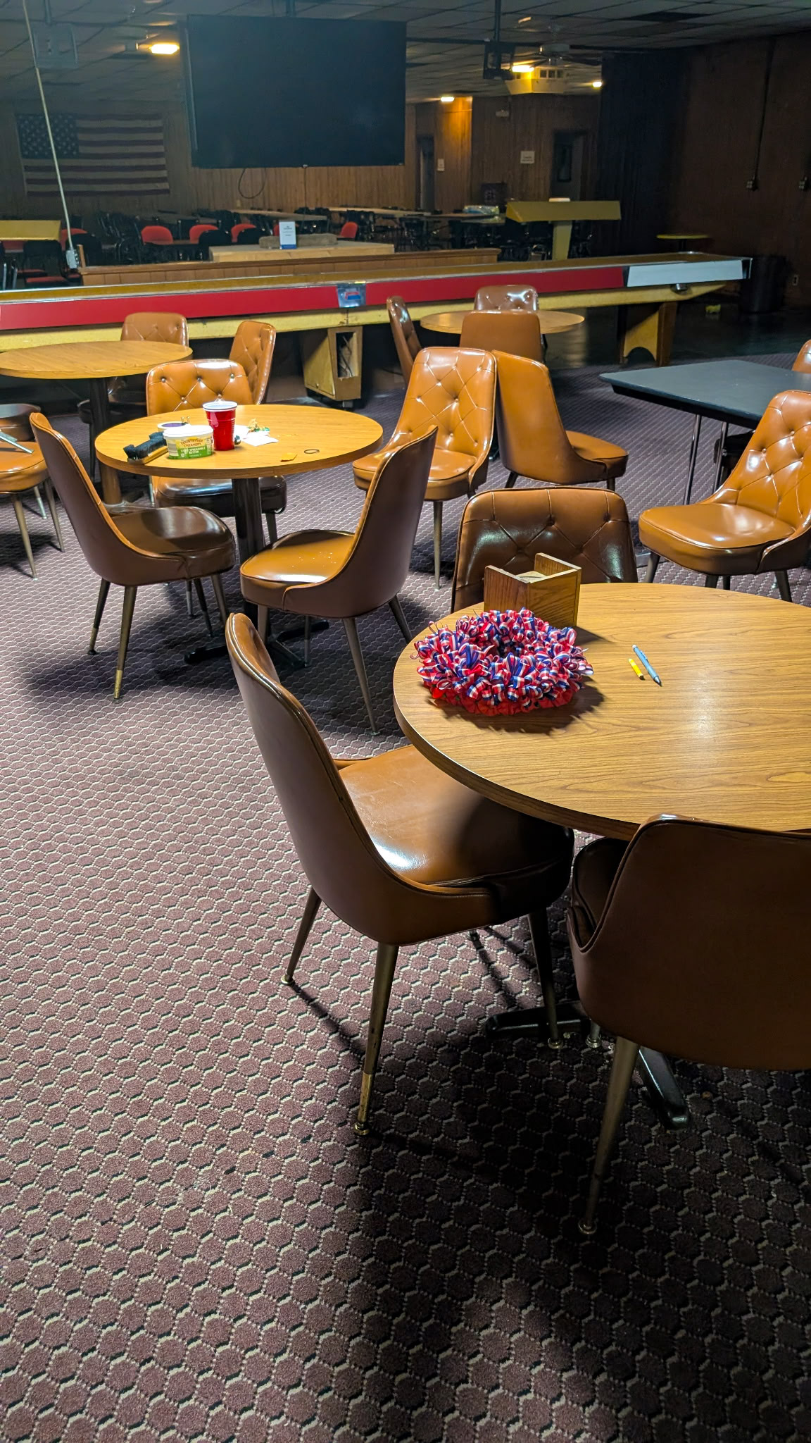 Lg. Shuffleboard, Pool Table, lots of tables & chairs,