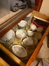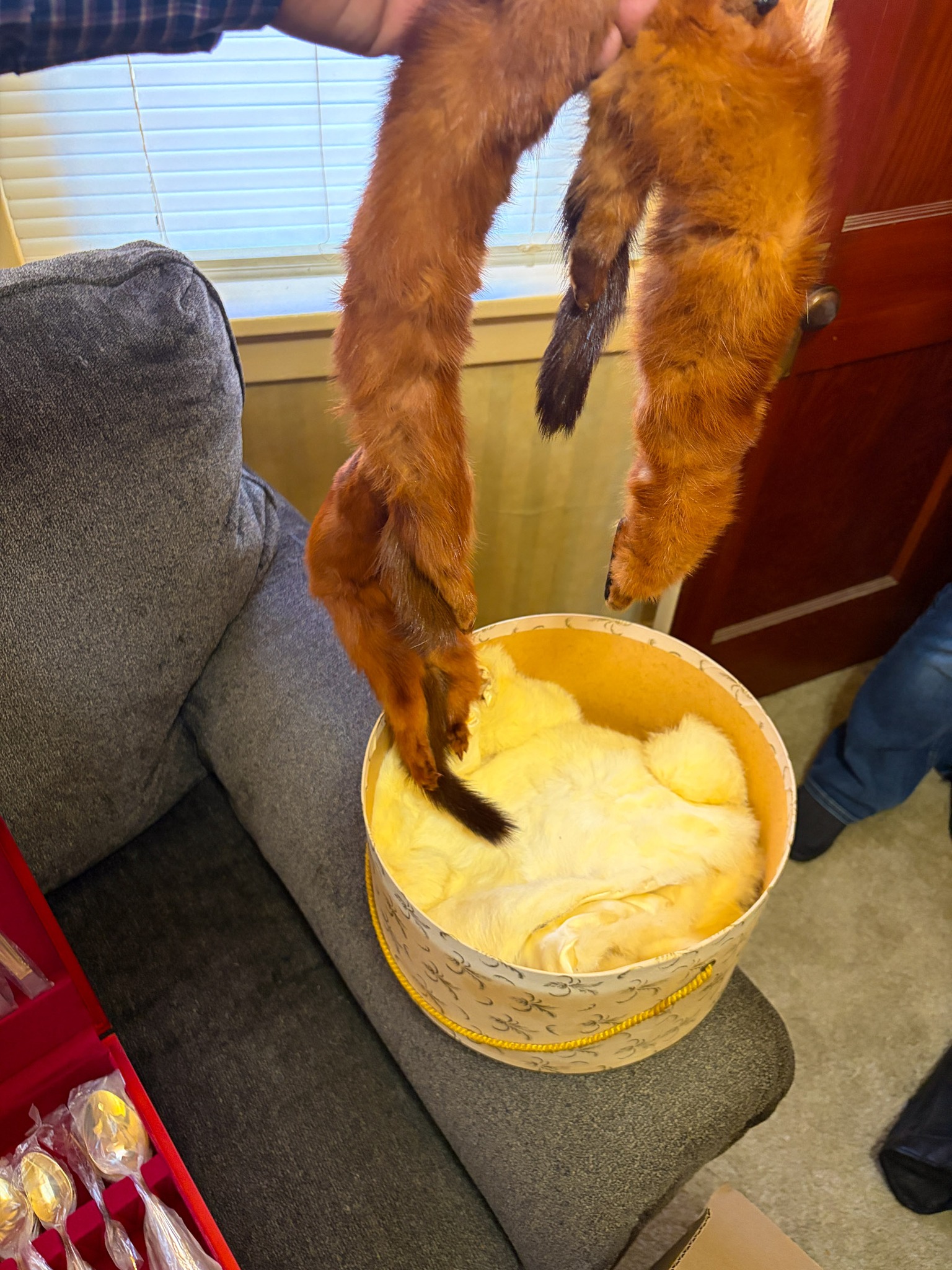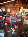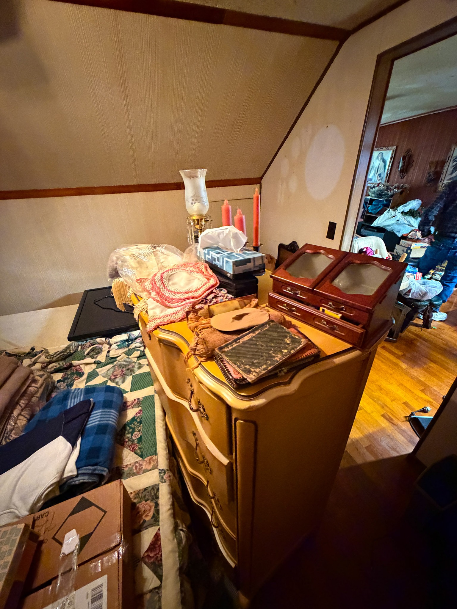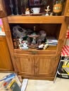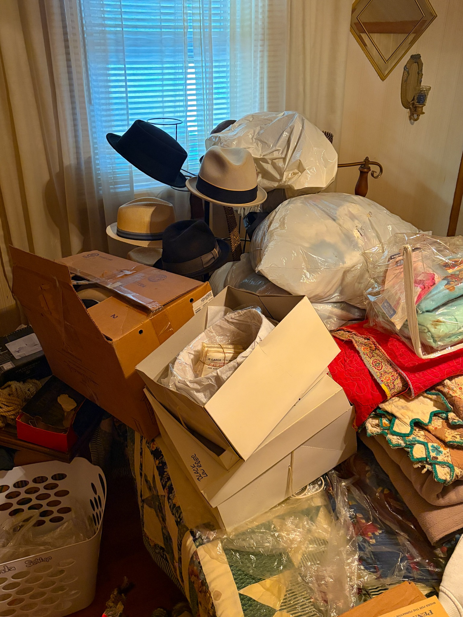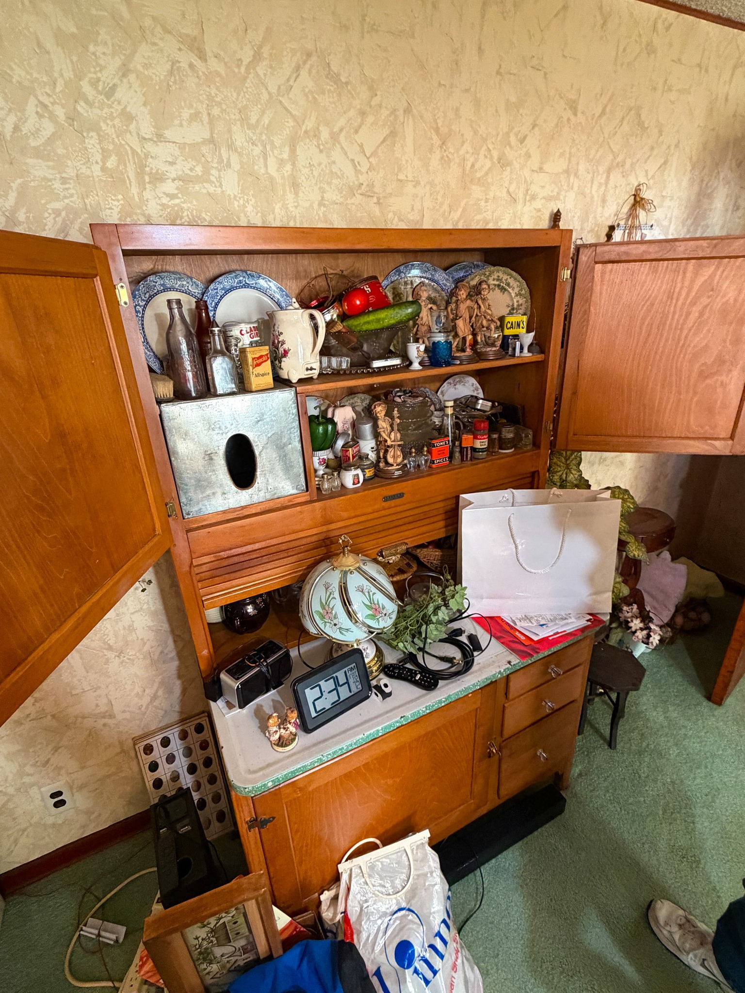 Antiques & Household: Hosier cabinet Elwood Indiana, vintage bottle collection, vintage cans & tea pots, stereo, CD's, vinyl albums, records, vintage dolls, cookbook collection, lamps, crystal, glassware, end tables, blown glass, couch, chairs, recliner, lots of new bedding, linens, towel, quilts, old Fuller Brushes sign, Page Milk metal crate Coffeyville, KS 3-57, small kitchen appliances, pocket knives, lighters, costume jewelry, vase collection, samsung 32" flat screen tv, mink furs, new flatware sets, cookware, pastry supplies, original Japanese dolls, love seat, craft supplies, vacuums, like new Tepur-cloud queen bed, dressers, China sets, vintage board games, Nascar jacket, Harley Davidson coat, misc. Jackets, office supplies, desk w/ chair, Musical instruments (harp), Keyboard & sound system, treadle sewing machine in stand, hat collection, Crockett spurs, old book collection, holiday decor, Maytag washer & dryer, small chest freezer, Antique Frigidiare ice box, vintage fire extinguishers, Indian paintings, other misc collectibles & household