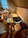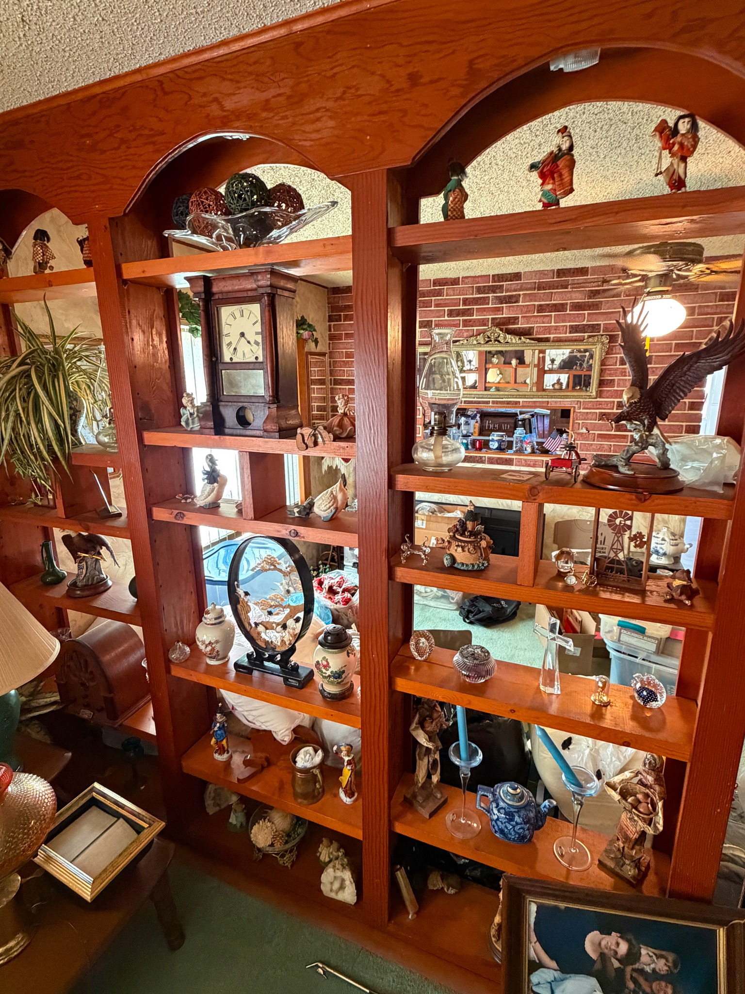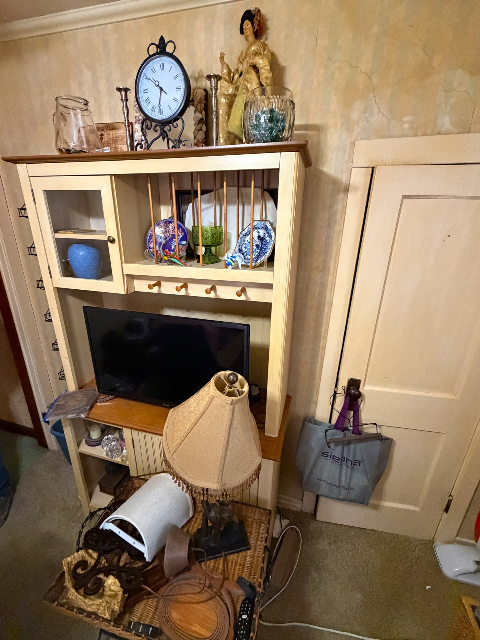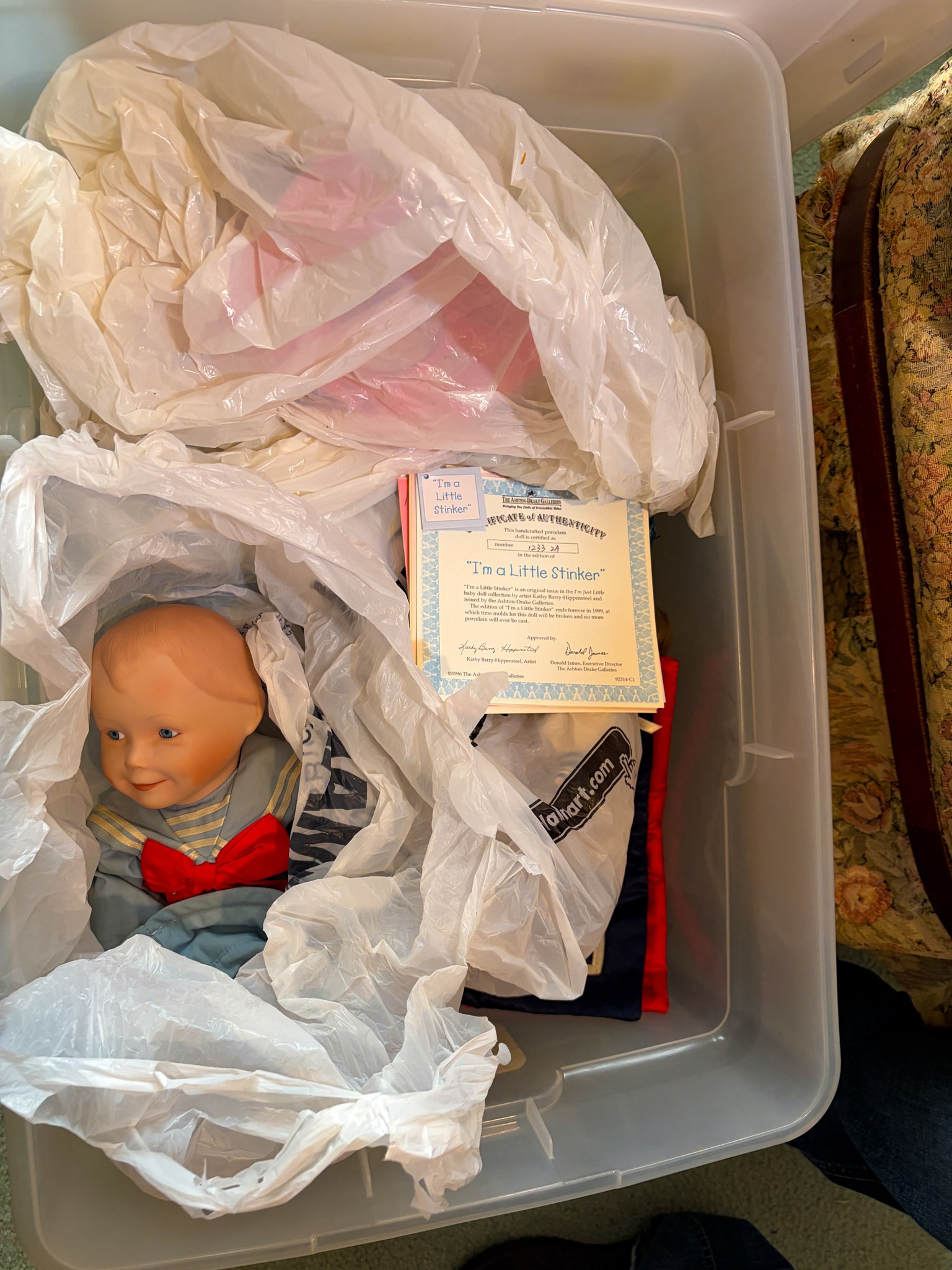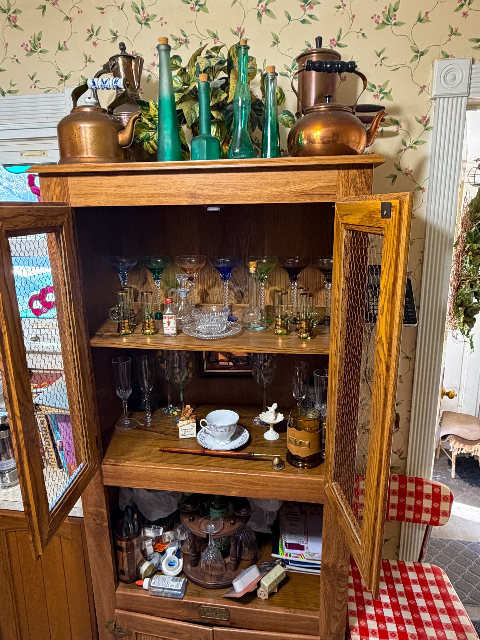 Antiques & Household: Hosier cabinet Elwood Indiana, vintage bottle collection, vintage cans & tea pots, stereo, CD's, vinyl albums, records, vintage dolls, cookbook collection, lamps, crystal, glassware, end tables, blown glass, couch, chairs, recliner, lots of new bedding, linens, towel, quilts, old Fuller Brushes sign, Page Milk metal crate Coffeyville, KS 3-57, small kitchen appliances, pocket knives, lighters, costume jewelry, vase collection, samsung 32" flat screen tv, mink furs, new flatware sets, cookware, pastry supplies, original Japanese dolls, love seat, craft supplies, vacuums, like new Tepur-cloud queen bed, dressers, China sets, vintage board games, Nascar jacket, Harley Davidson coat, misc. Jackets, office supplies, desk w/ chair, Musical instruments (harp), Keyboard & sound system, treadle sewing machine in stand, hat collection, Crockett spurs, old book collection, holiday decor, Maytag washer & dryer, small chest freezer, Antique Frigidiare ice box, vintage fire extinguishers, Indian paintings, other misc collectibles & household