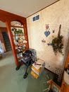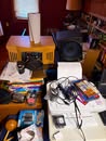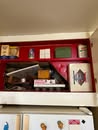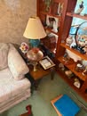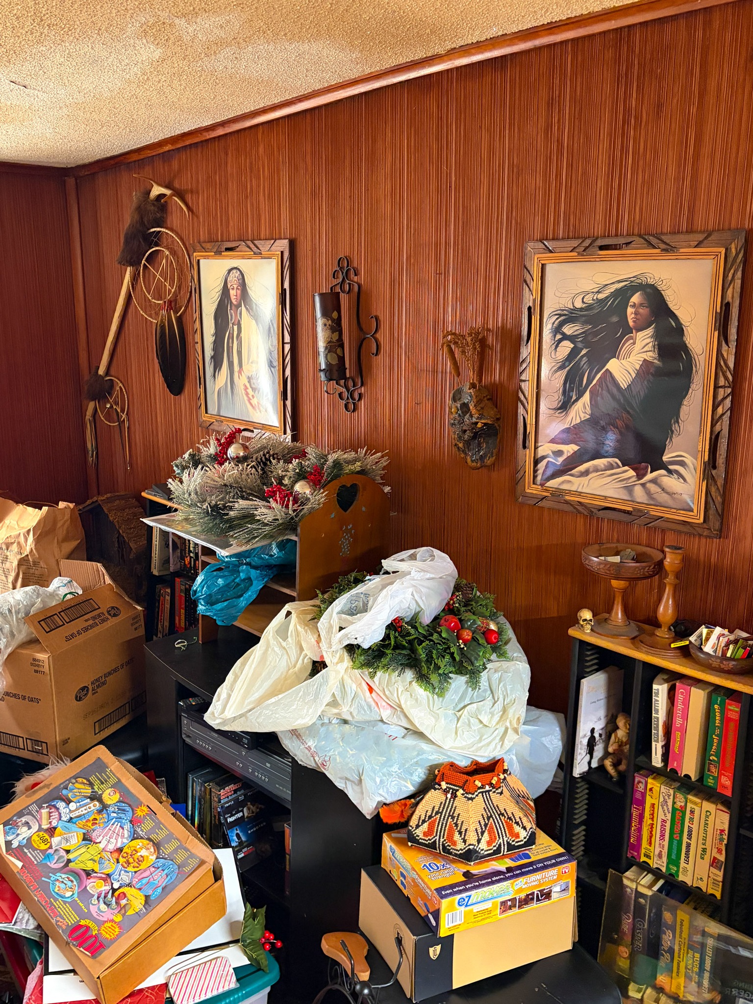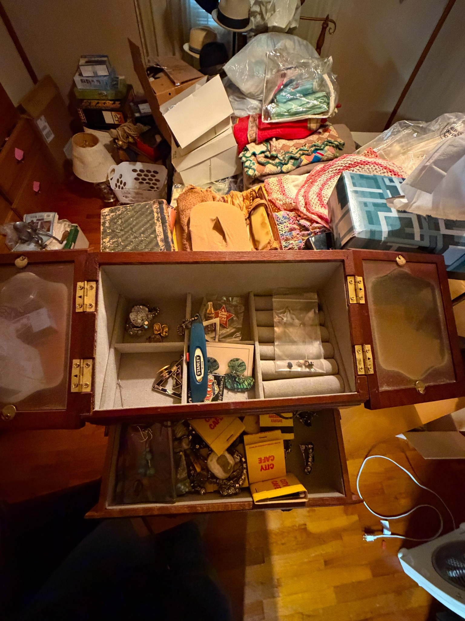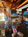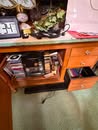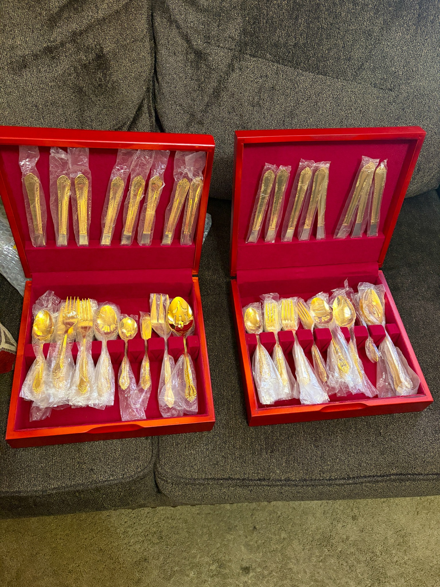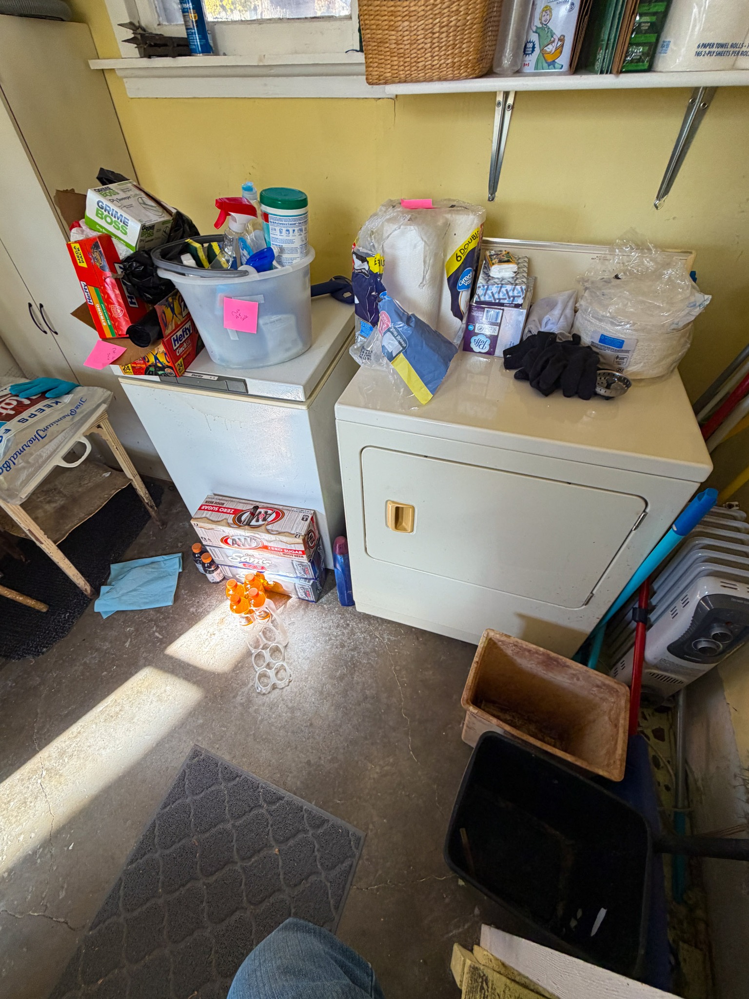 Antiques & Household: Hosier cabinet Elwood Indiana, vintage bottle collection, vintage cans & tea pots, stereo, CD's, vinyl albums, records, vintage dolls, cookbook collection, lamps, crystal, glassware, end tables, blown glass, couch, chairs, recliner, lots of new bedding, linens, towel, quilts, old Fuller Brushes sign, Page Milk metal crate Coffeyville, KS 3-57, small kitchen appliances, pocket knives, lighters, costume jewelry, vase collection, samsung 32" flat screen tv, mink furs, new flatware sets, cookware, pastry supplies, original Japanese dolls, love seat, craft supplies, vacuums, like new Tepur-cloud queen bed, dressers, China sets, vintage board games, Nascar jacket, Harley Davidson coat, misc. Jackets, office supplies, desk w/ chair, Musical instruments (harp), Keyboard & sound system, treadle sewing machine in stand, hat collection, Crockett spurs, old book collection, holiday decor, Maytag washer & dryer, small chest freezer, Antique Frigidiare ice box, vintage fire extinguishers, Indian paintings, other misc collectibles & household