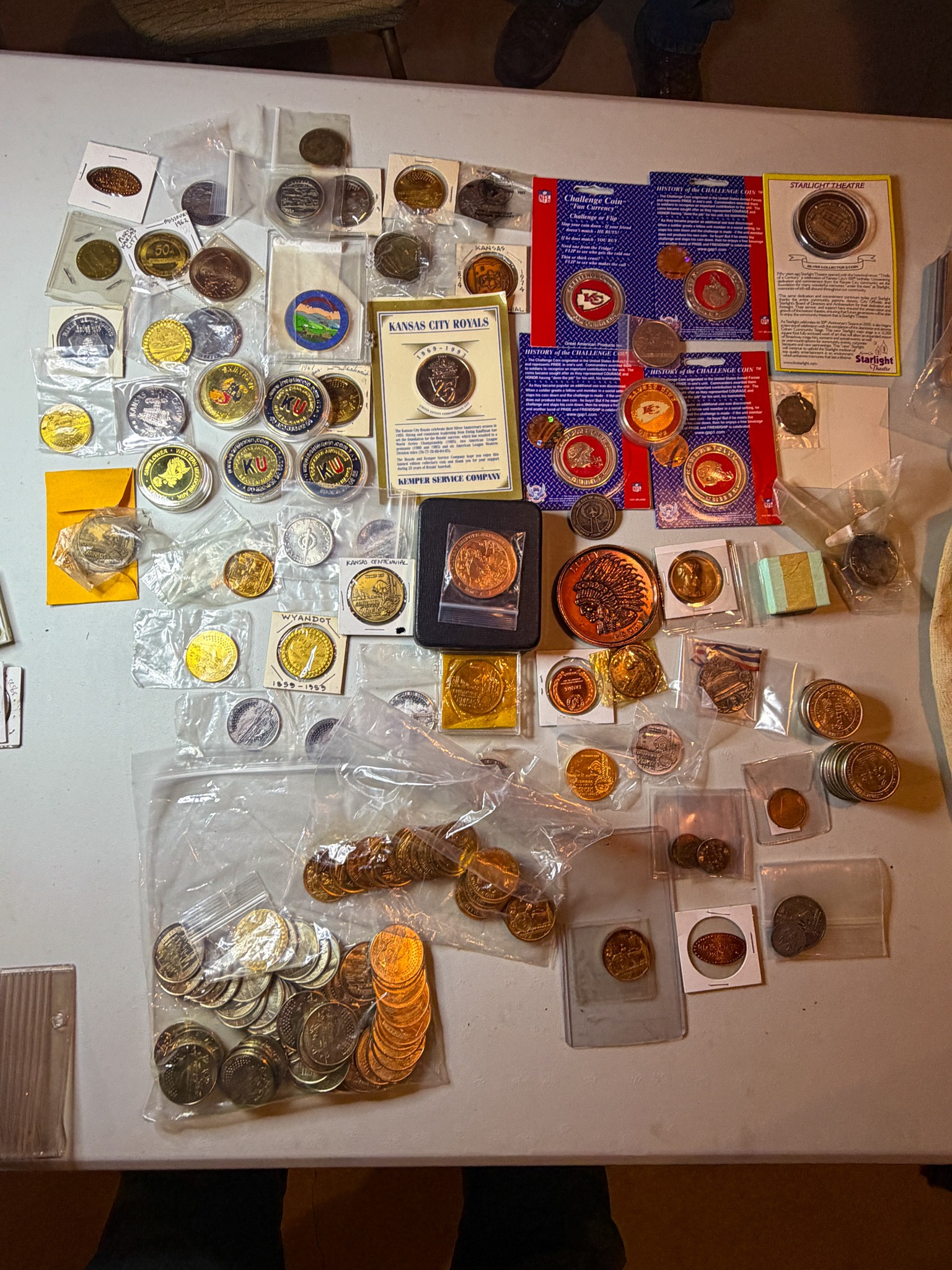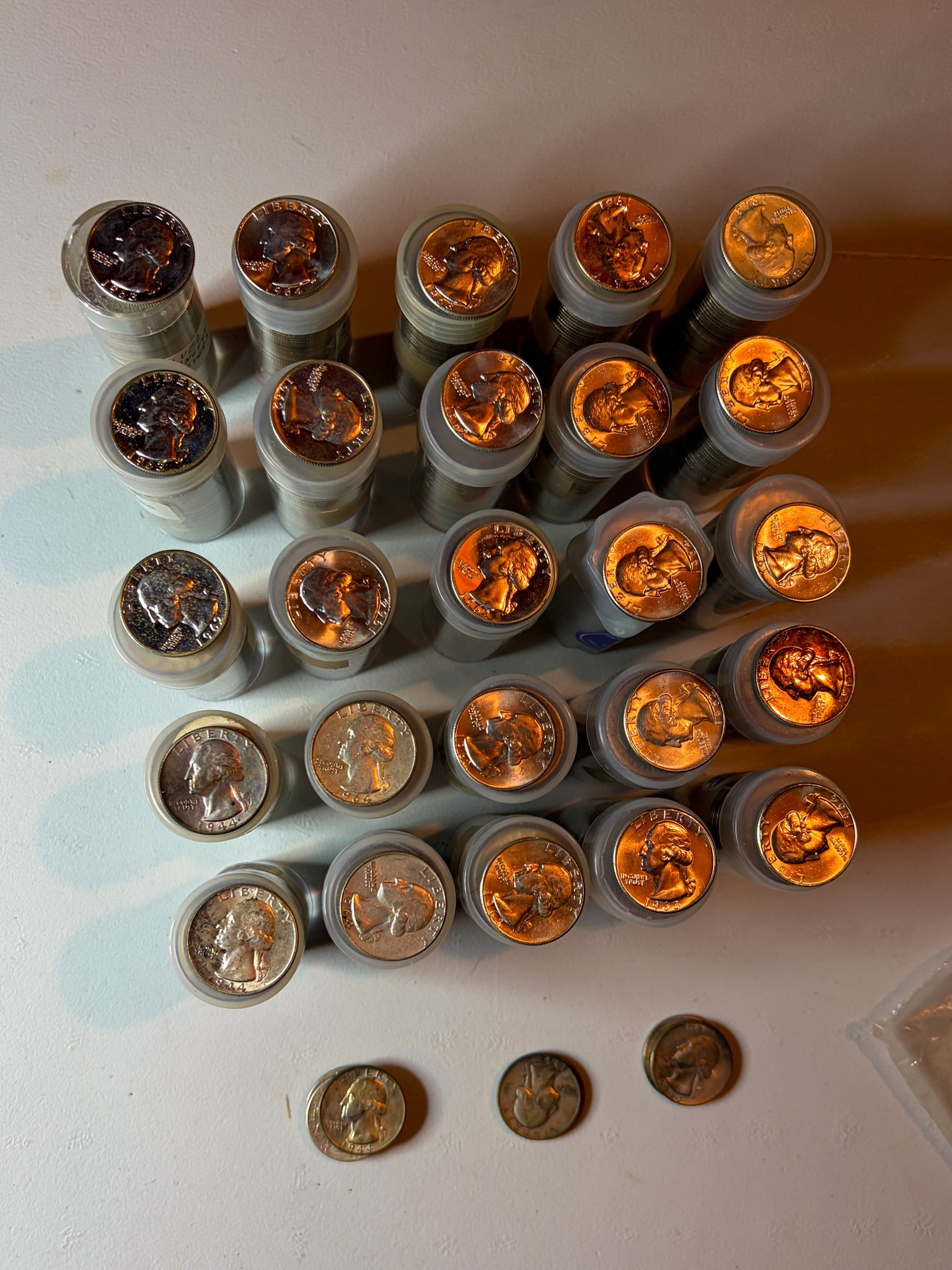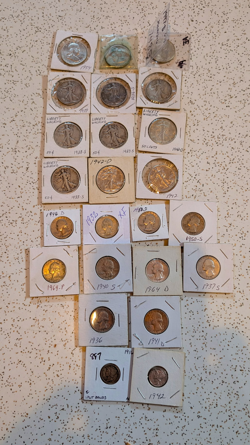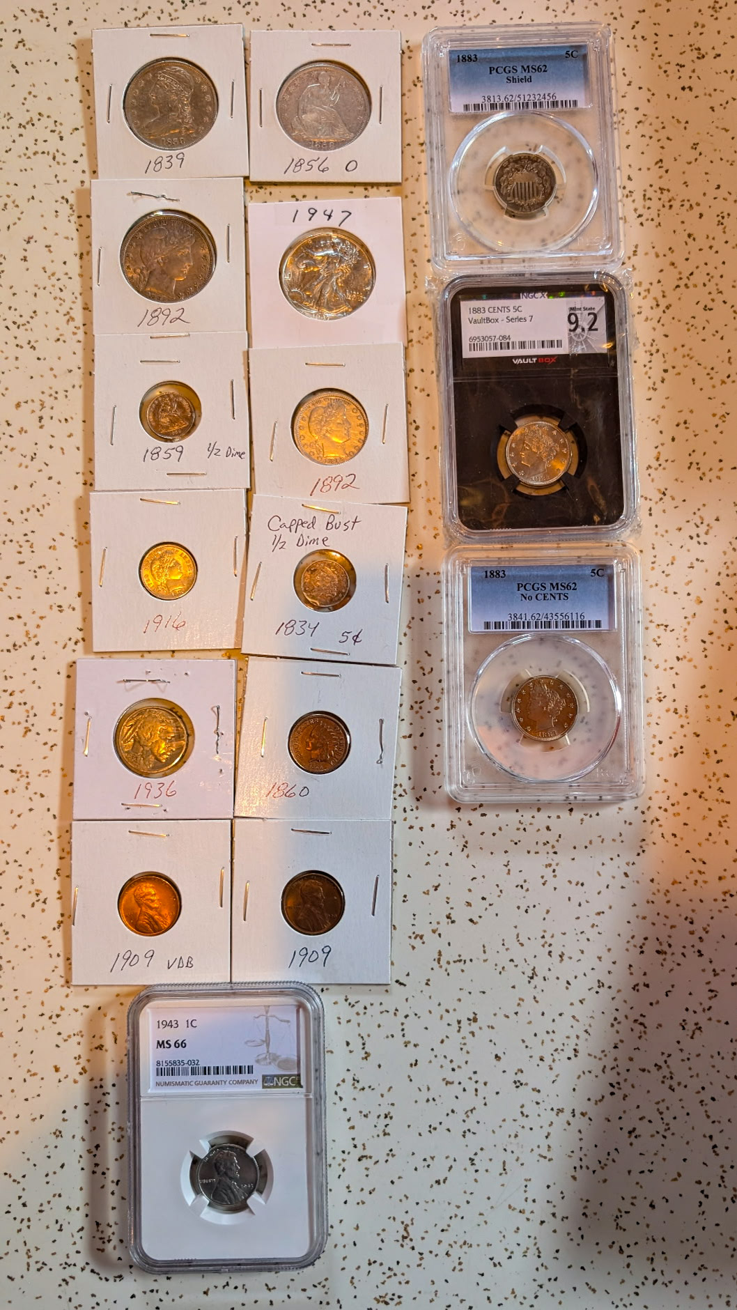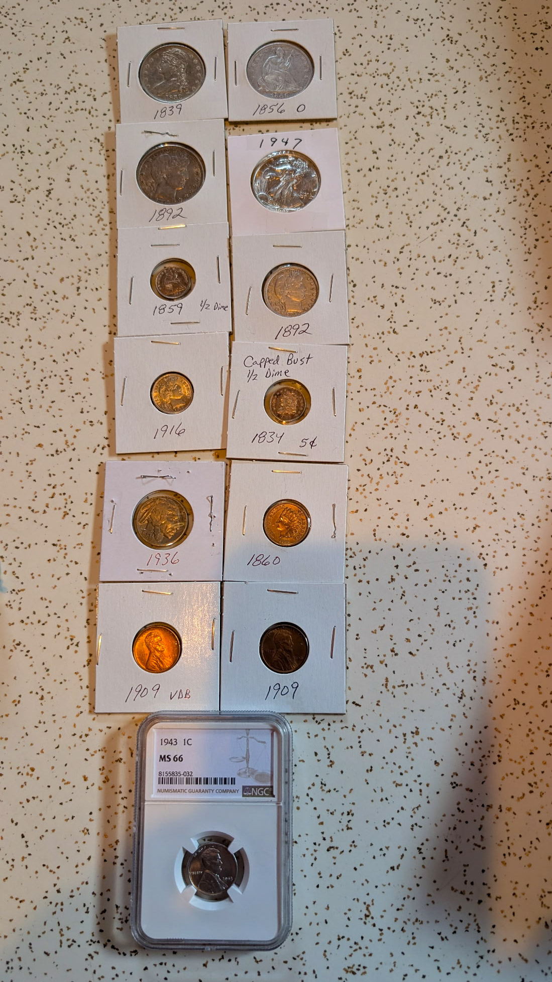 Other Misc: ½ cents, large cents, small cents, ½ dimes, quarters, 20cent, ½ dollars, commemorative ½ dollars, silver dollars, jars of tokens, jars of pennies, rolls of Wheat Head & Indian Head Pennies, Nickels, Rare coins in great condition, 3cent pc, 2cent pc, Graded Slabed coins, much more to sort. Some Books and Type sets might need split.